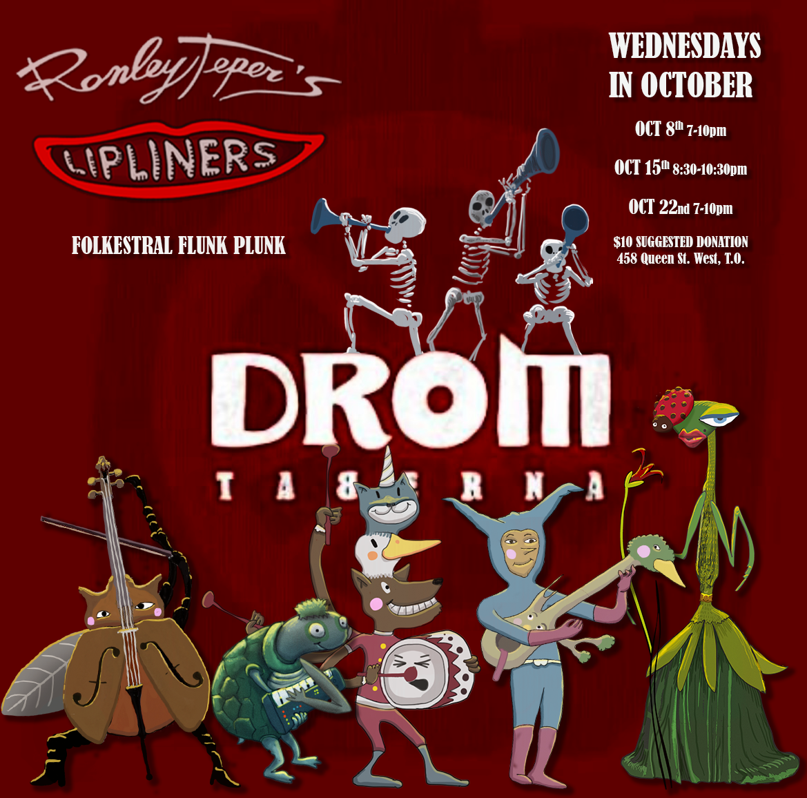 Children at heart who love comedic, poetic, theatric, yet at times serious storytelling alongside truly magical music, should prepare themselves for the surprising world of Ronley Teper’s Lipliners, Teper invites a rotating roster of some of the finest musicians to publicly improvise around her musical storytelling that cycle through many influences from folk, funk, jazz, cabaret, cinematic, post rock and pop musical sensibilities. She has been described as reminiscent of artists including Tom Waits, Mary Margaret O’Hara, Kate Bush, Talking Heads, and Frank