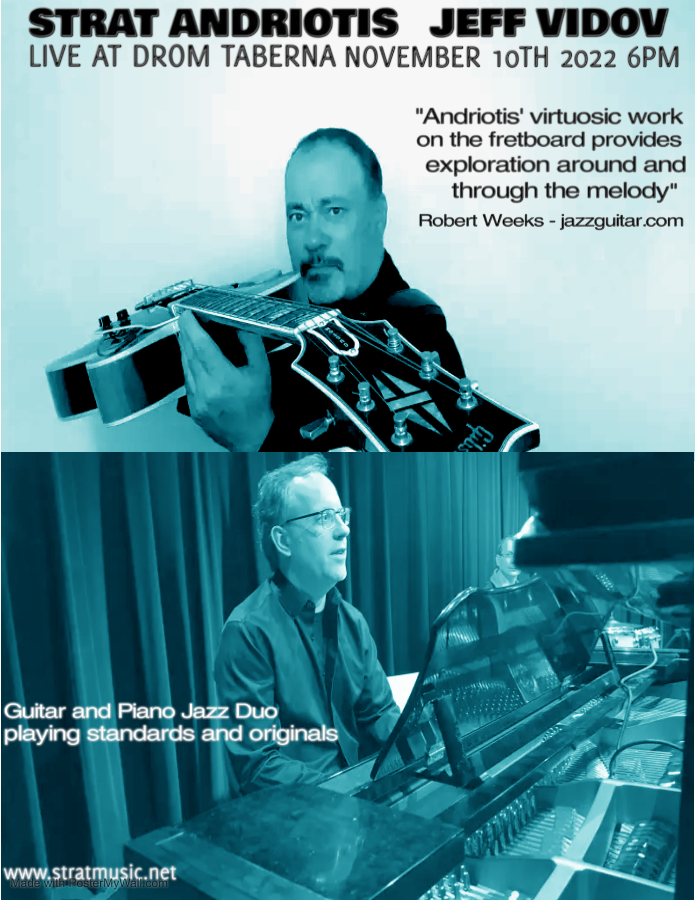 An exceptional guitar and piano jazz duo, playing standards and originals. Treat your ears to classics by Thelonius Monk, Miles Davis, John Coltrane and Charlie Parker.